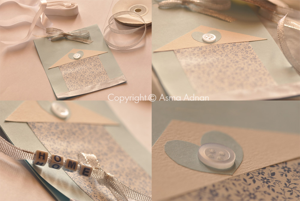 بدأتُ بالأوراق المُلوّنة .. و ورق تغليف و أشرطة و أزرار ..