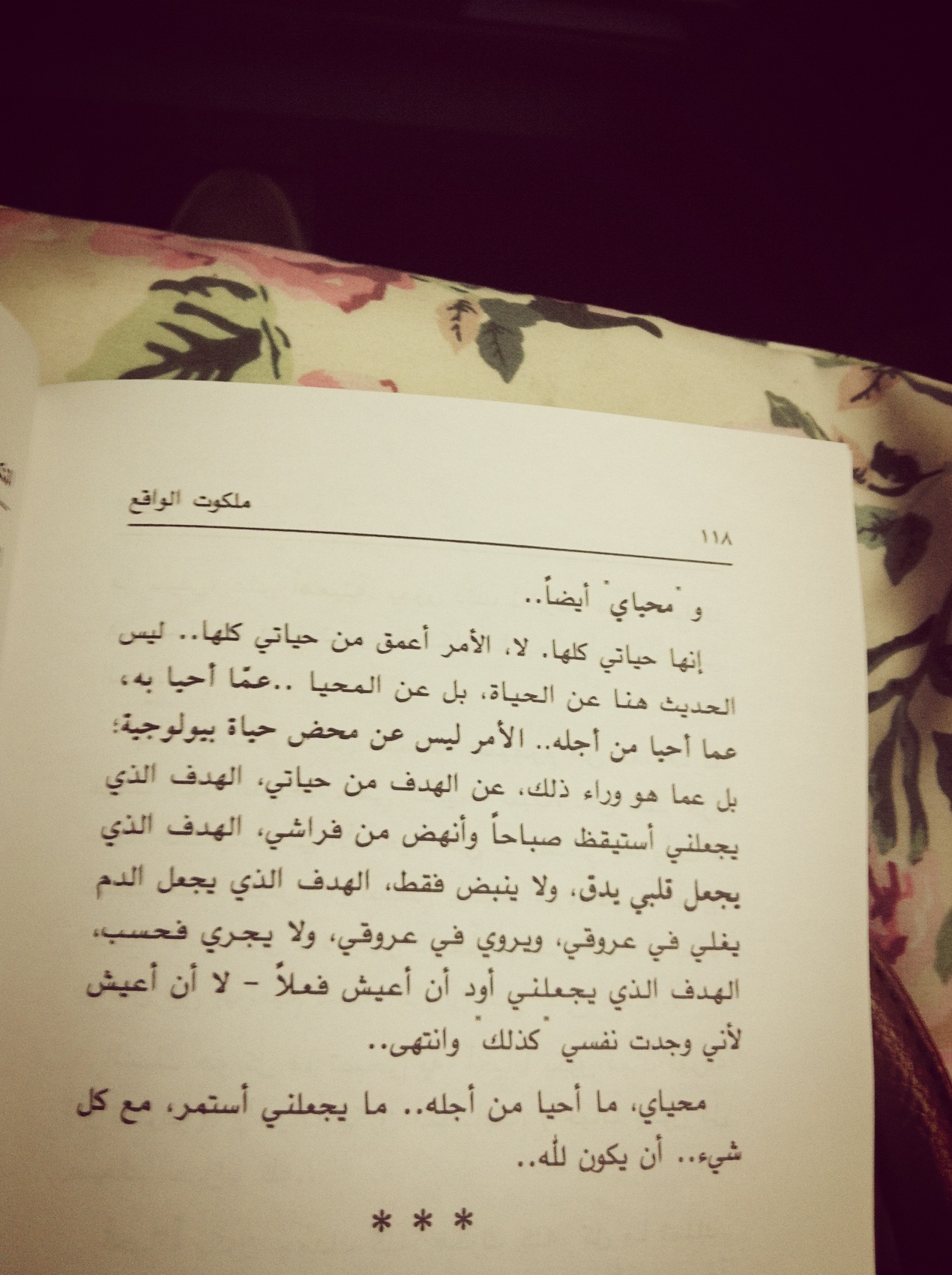 ربما من أجمل ما قرأتِ هذه الأيام ” ملكوت الواقع ” الكتاب الثاني من سلسلة كيمياء الصلاة لـ أحمد خيري العمري ..